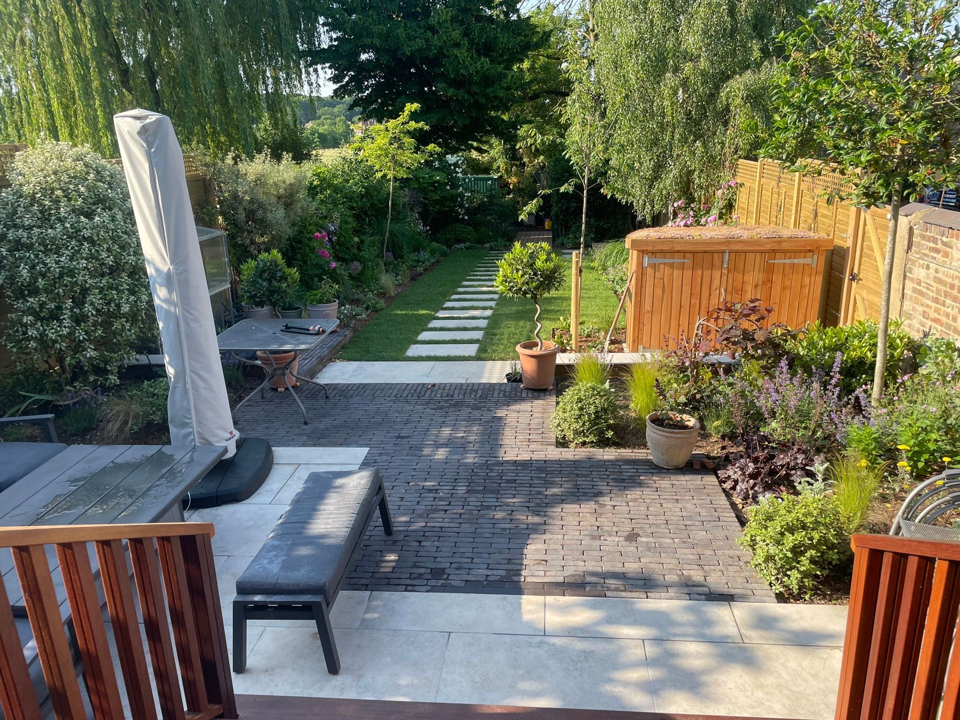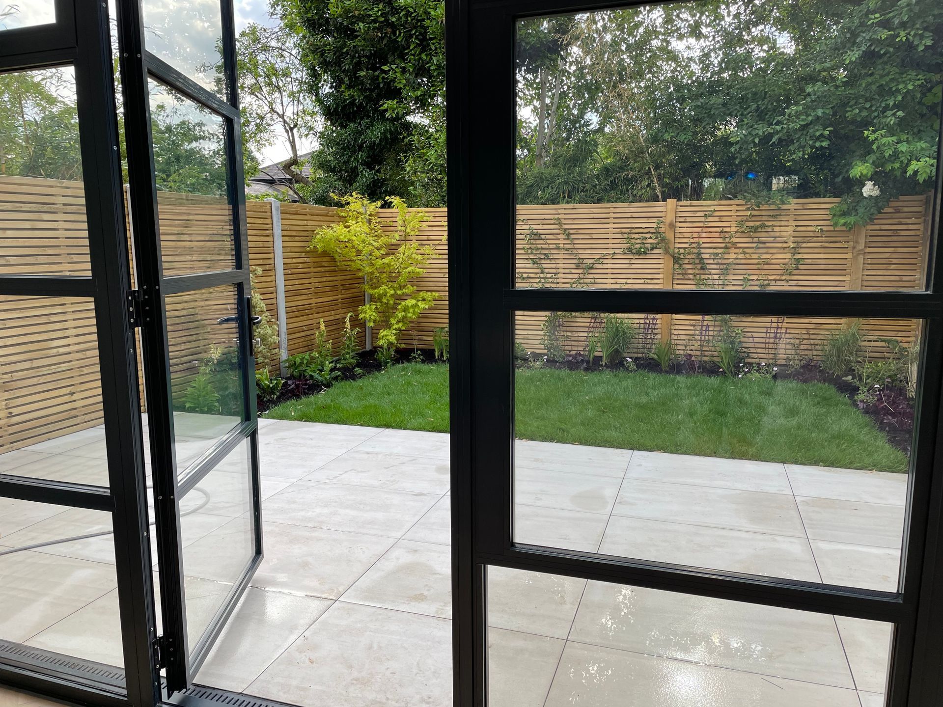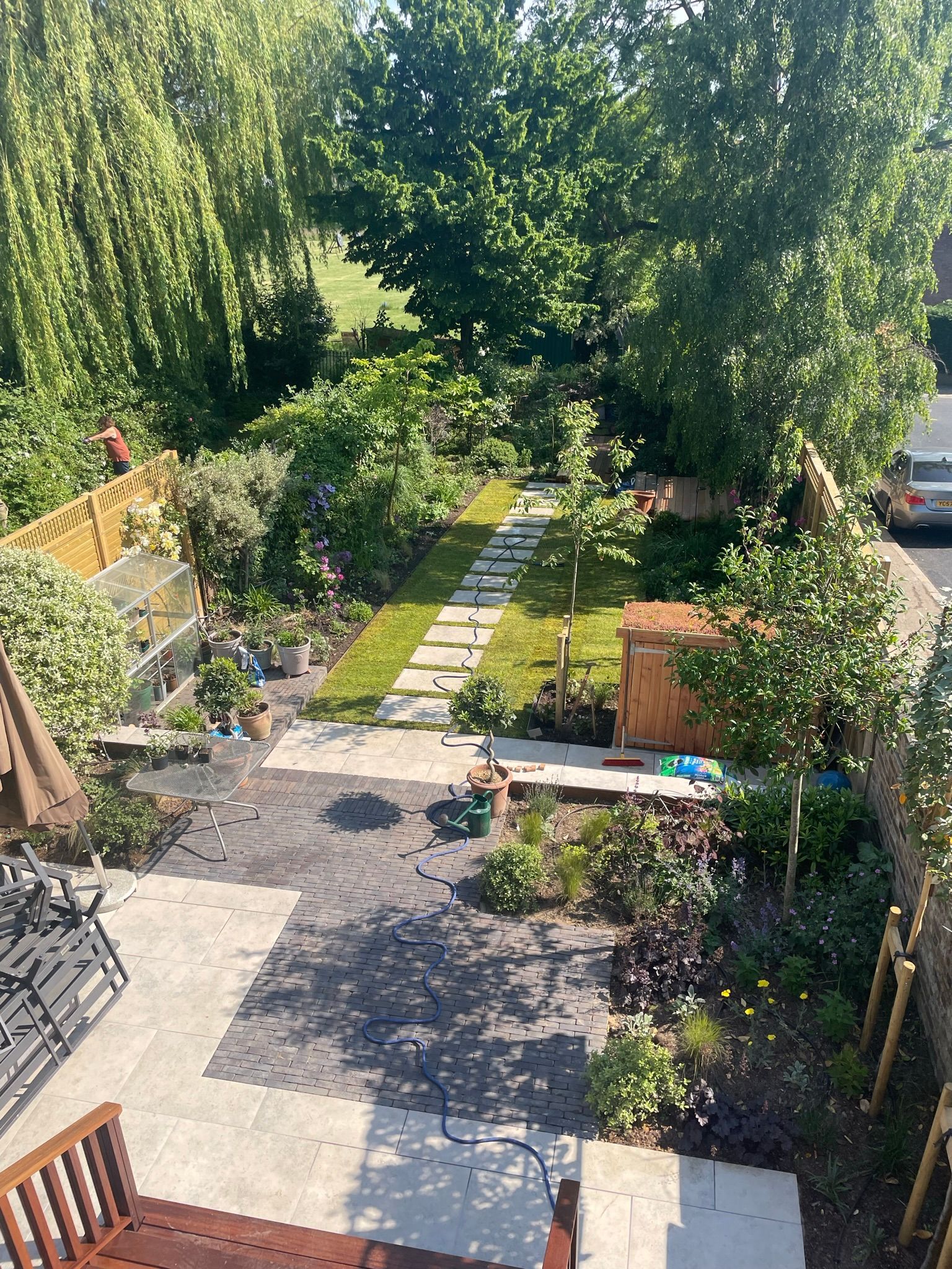 Garden Design and planting of a front and back garden for a property developers comprehensive project completed in early Summer 2022. The back garden is now level with a horizontal slated fence and porcelain seating area. Planting is low maintenance and will give year round interest. The first 2 pictures give a good idea of what we started with! Built by AM Investments